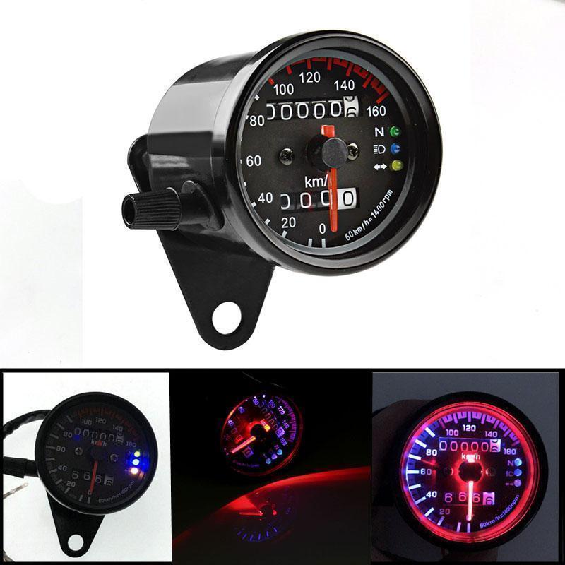 - M66 スピードメーター 機械式 DC 12V 160km/h バイク用メーター LED照明 走行距離 V字ステー付き 取付簡単 オドメーター トリップメーター