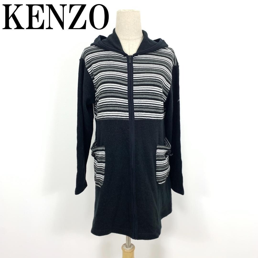 - LA4980 ケンゾー キッズ 長袖 ジップ ロングカーディガン KENZO フード付き リブニット ポケット有 ボーダーブラック150