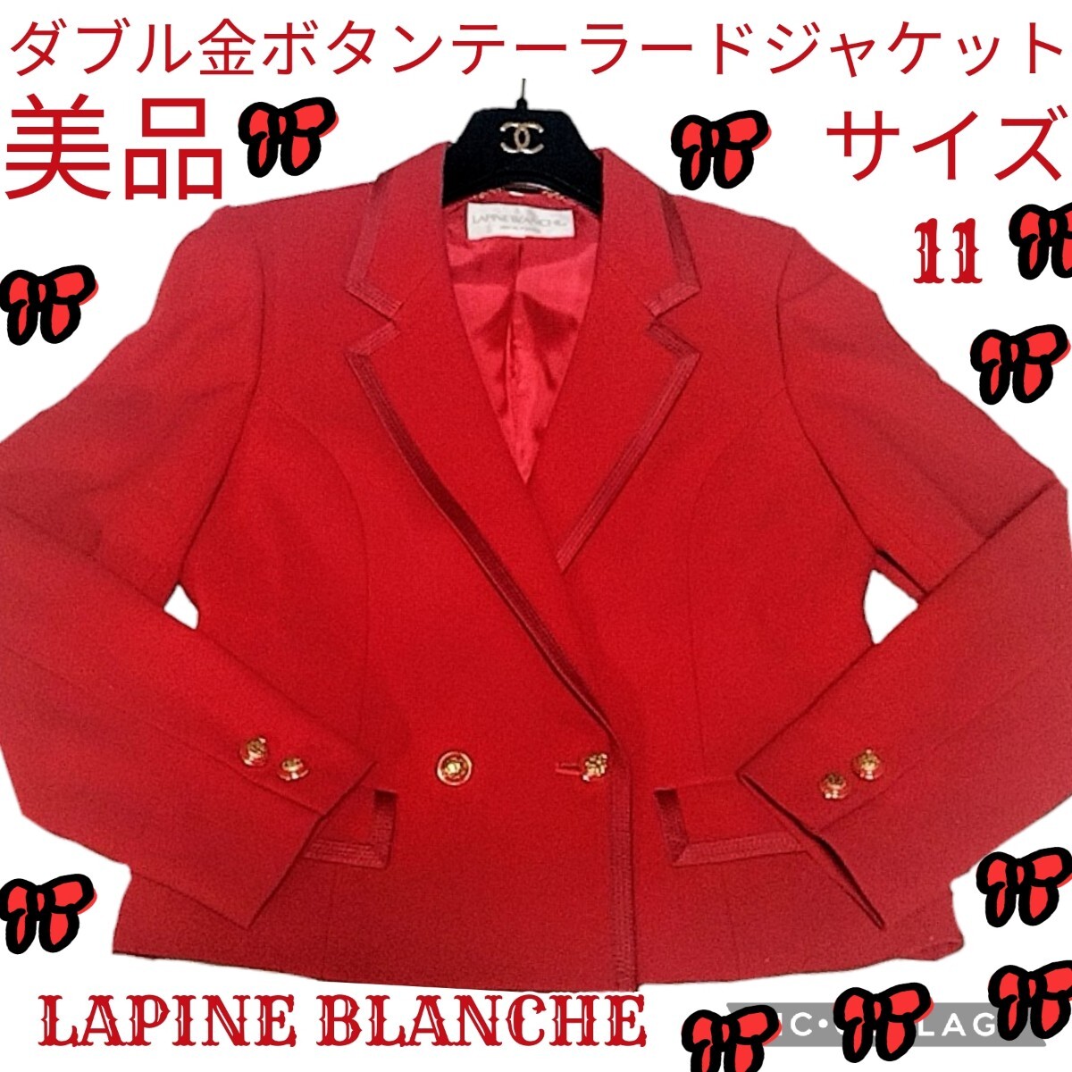 > 美品★ラピーヌブランシュ★LAPINE BLANCHE★テーラードジャケット★金ボタン★赤★レッド★高級★ダブルブレスト★春秋★ウール★大きい