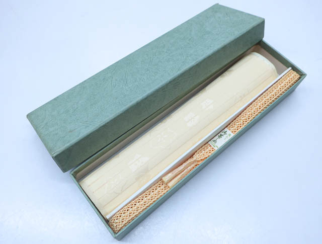 - 《古美術京松》【着物】 和装小物 帯締め 帯揚げ セット 未使用品 洗える 夏物 絽 華美裳ちりめん 桔梗文 平組 箱付 R6W-356