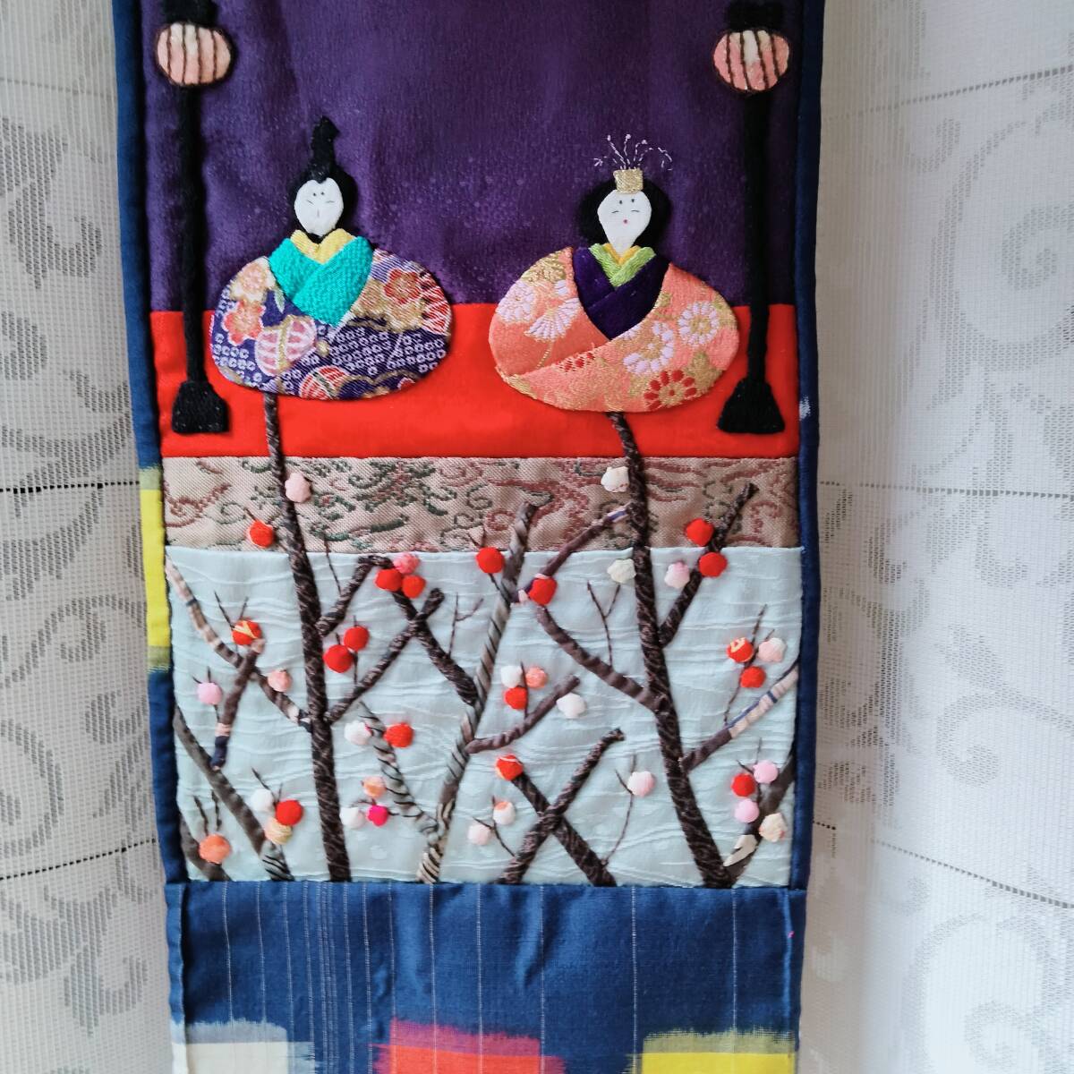 - ハンドメイド【お雛様】着物リメイク タペストリー 68㎝ ちりめん細工 雛人形 ひな祭り 桃の節句 押絵