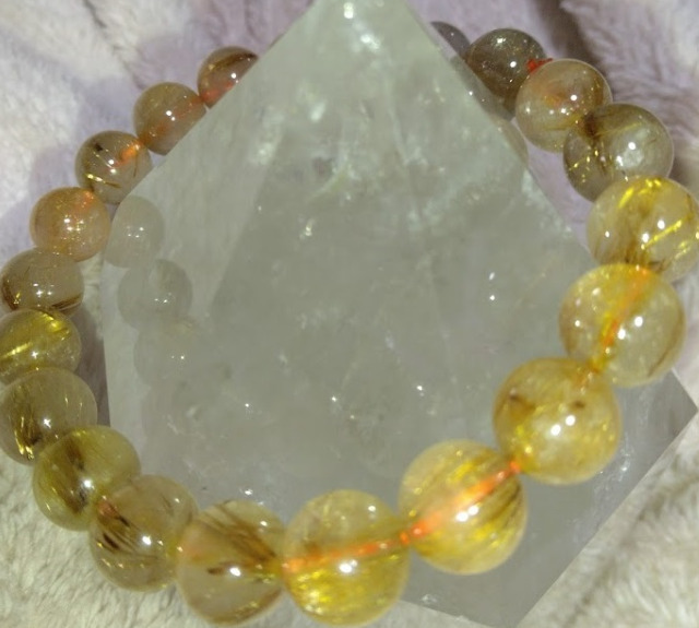 - 黄金天然ゴールドルチルクォーツ ブレスレット パワーストーン 天然石