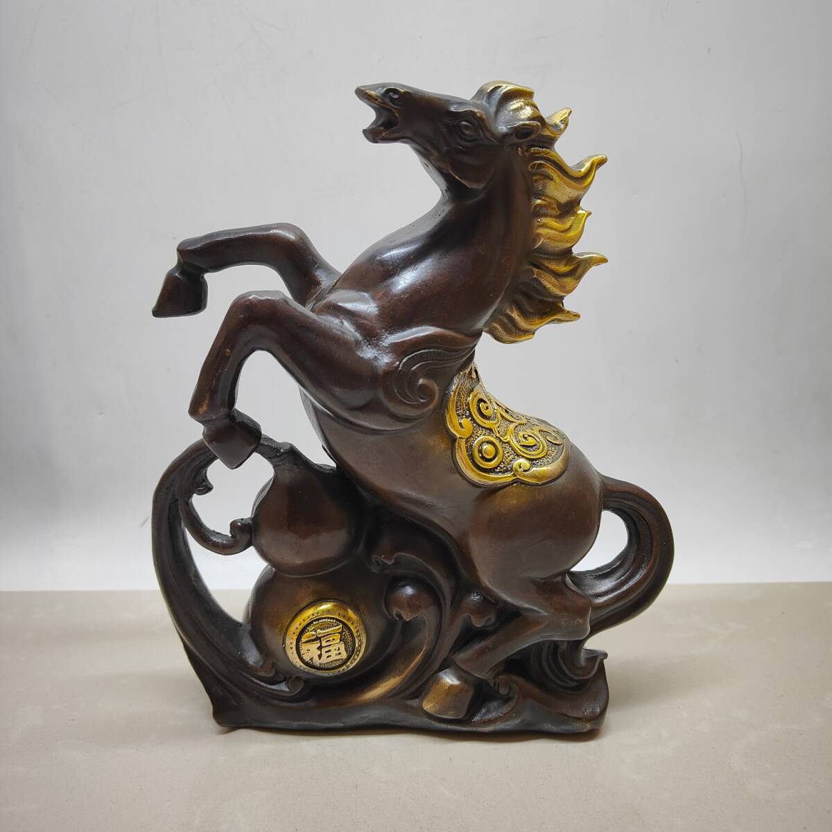 - ▽鴻▽ 黄銅製 塗金 ひょうたん馬 置物 古賞物 中国古玩 中国古美術