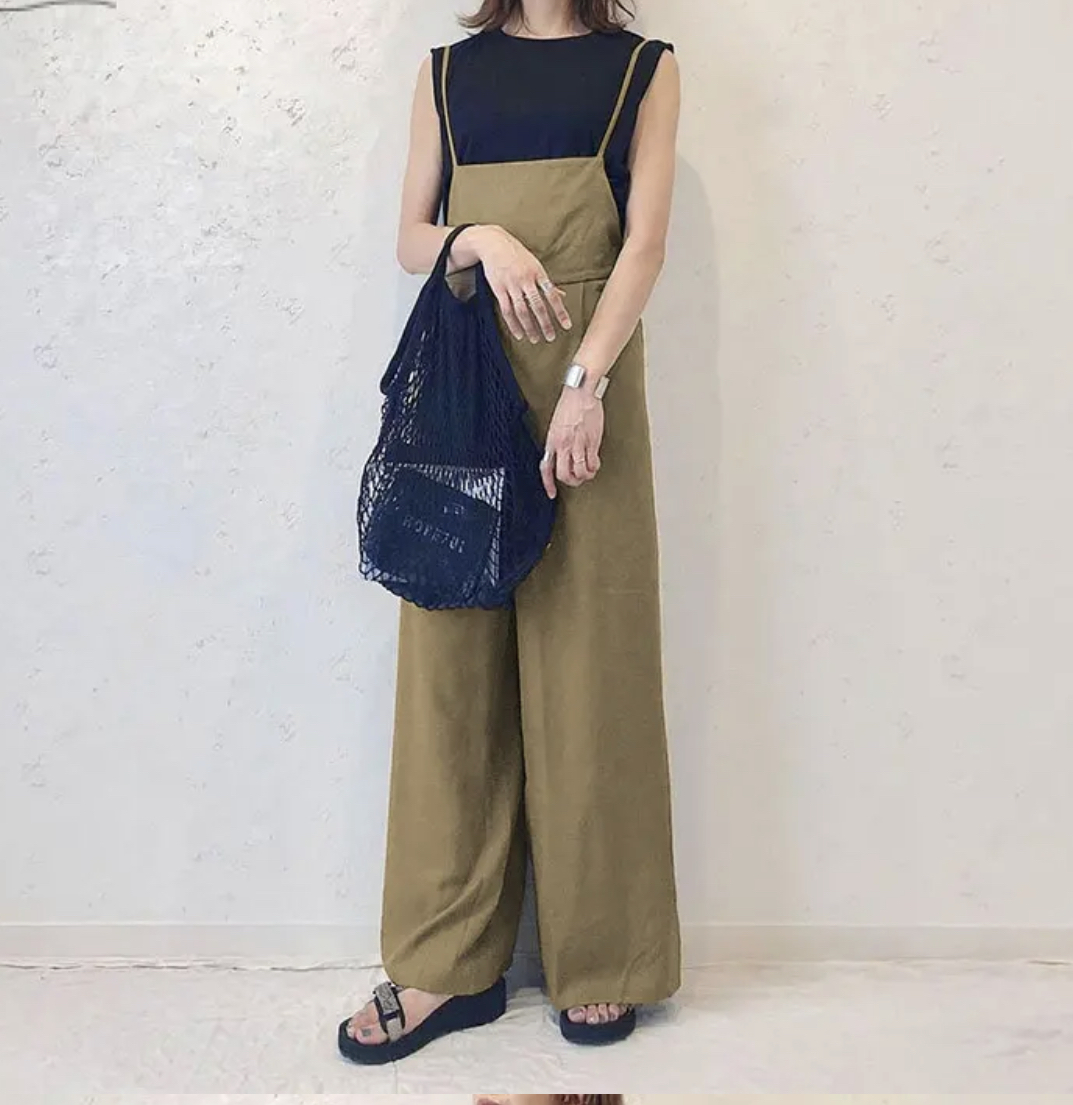 - 【新品】オールインワン パンツ カーキ ブラウン ゆったり サロペット フリーサイズ