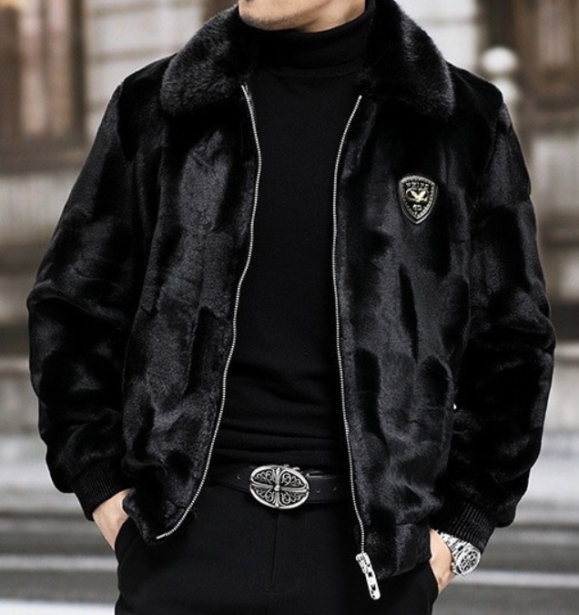 - 冬用 新作 ファーコート メンズ ブルゾン 紳士 アウター カジュアル 防寒防風 フェイクファー スリム 黒/XL