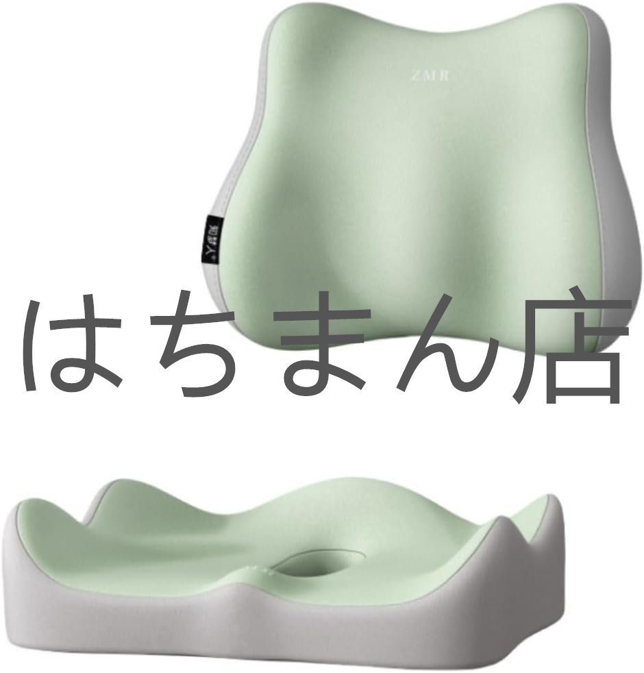 - シートクッション 2点セット座布団 低反発 ファッション まくらランバーサポート 人間工学 (緑です,座布団+クッションです)