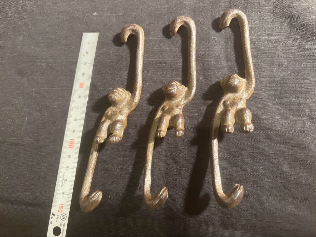 - アンティーク 金属工芸 テナガザル 吊り金具 3個