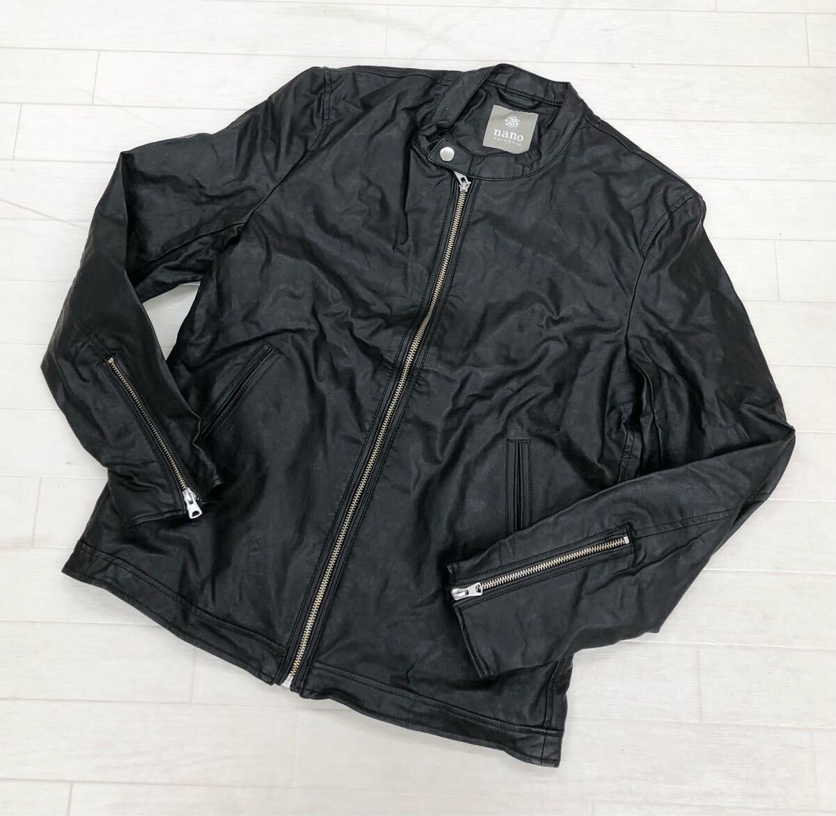 > 1703〓 NANO UNIVERSE ナノユニバース シングルフェイクレザージャケット メンズ サイズM ブラック 合成皮革 ブルゾン アウター ライダース