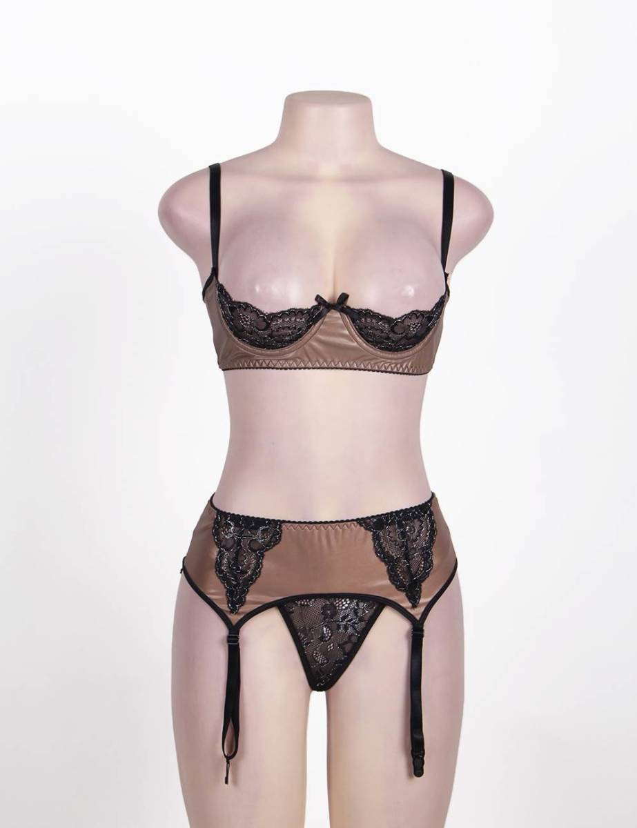 > 80313 ブラ ショーツ ガーター セット セクシー ランジェリー 下着 茶色 M LL 2L 3L 4L 5L 6L XL 3XL 5XL 大きいサイズあり