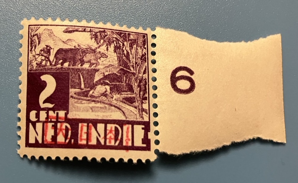 - 南方占領地 切手★東インド スマトラ 大日本 加刷 2SEN 加刷 裏のり 丸まり すかし有り 未使用
