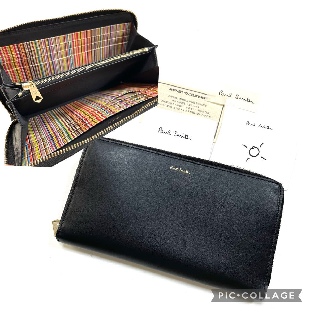 - 新品 ポールスミス 長財布 ラウンドファスナー 黒 定6.6万 インテリアマルチストライプ イタリア製 03810/502A