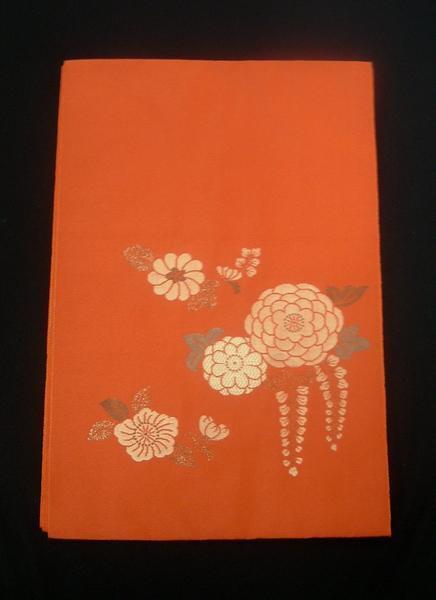 - 2053 洗える名古屋帯「朱色・花」【わけあり】-