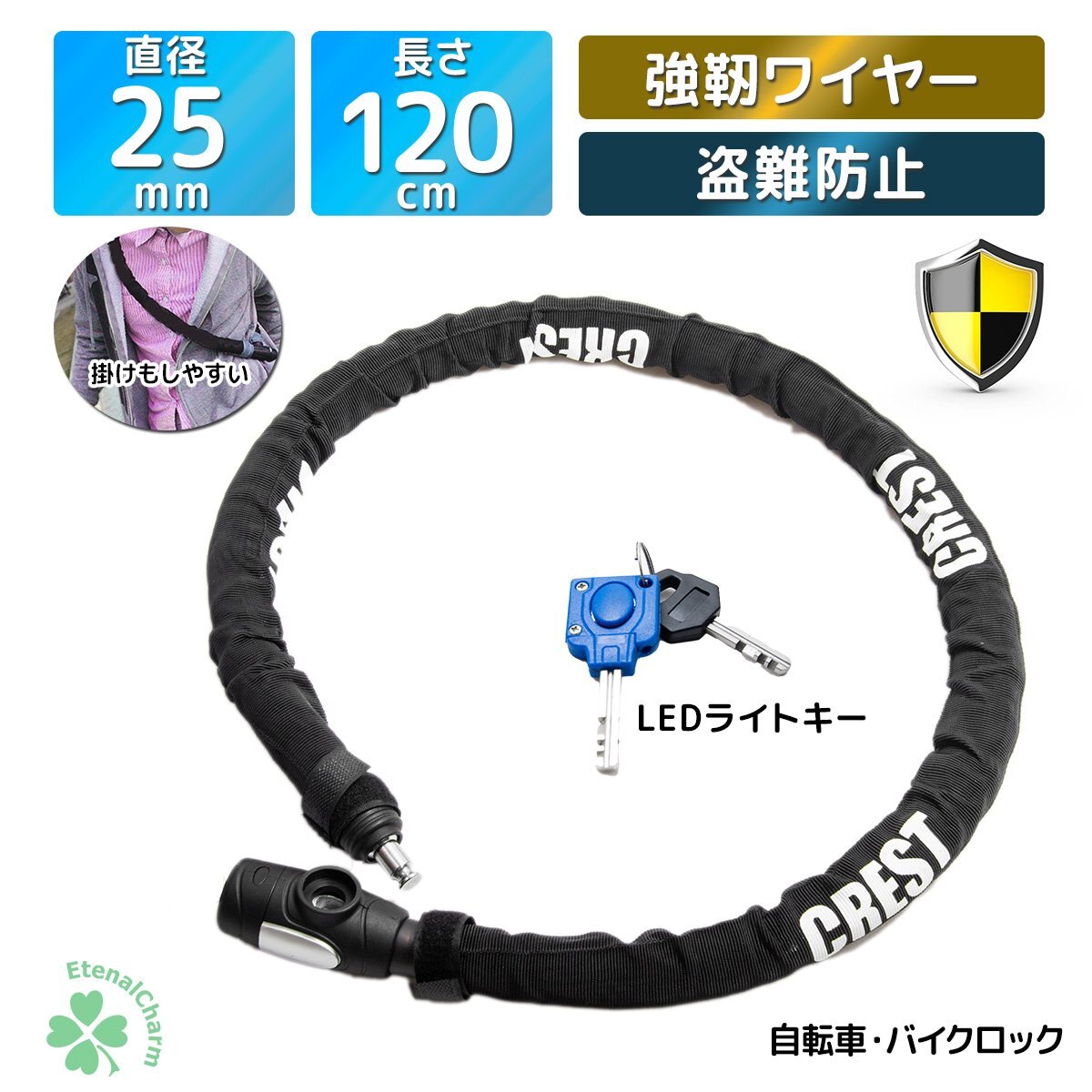 - CREST バイク ロック鍵 強靭ワイヤーロック鍵 直径25mm 盗難防止 防犯鍵ロック LEDライト付き バイクチェーンロック セキュリティ