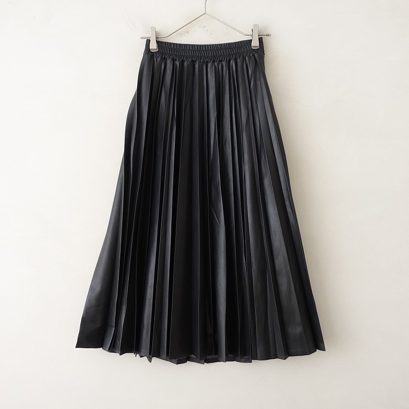 - ズッカ ZUCCA *PUレザープリーツスカート*M黒ブラックロングマキシウエストゴムフェイクレザー(sk33-2501-508)【72B52】