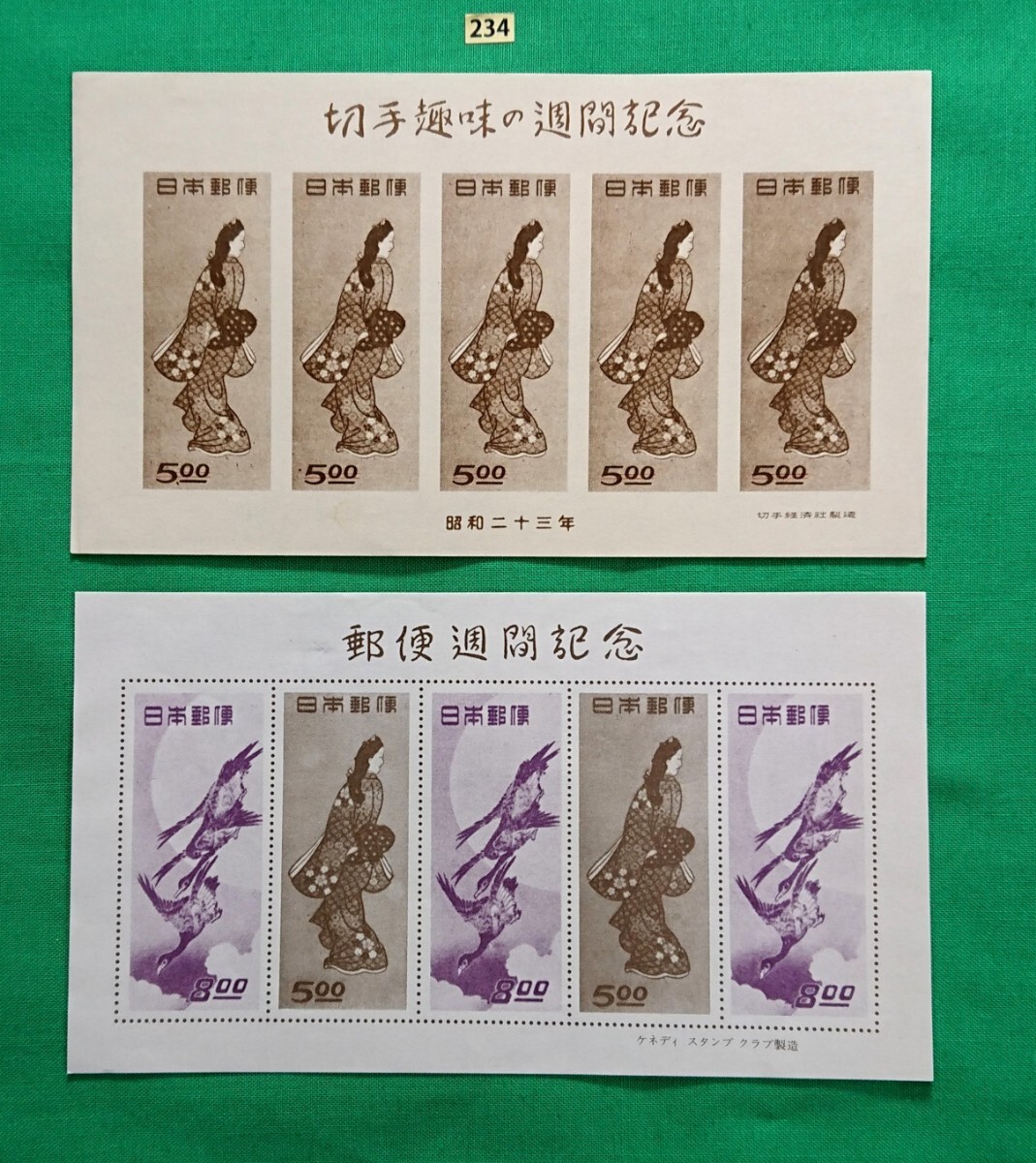 > 模刻品/参考品/切手では有りません/◯見返り美人/切手経済社製造◯月に雁見返り美人/ケネディスタンプC/模刻品2種/趣味週間/印刷物/No234