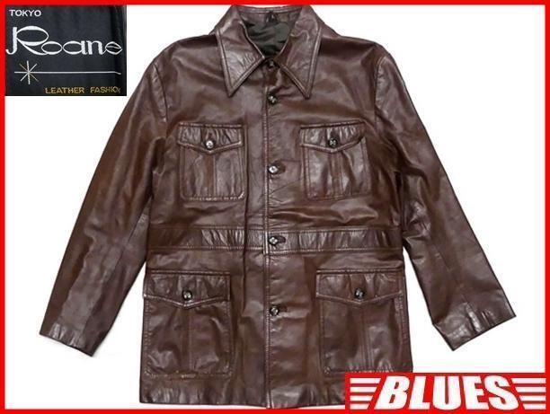 - 即決★Roane★メンズL レザーコート ロアン 茶 ブラウン 本革 ジャケット 本皮 カーコート 革ジャン ステンカラー