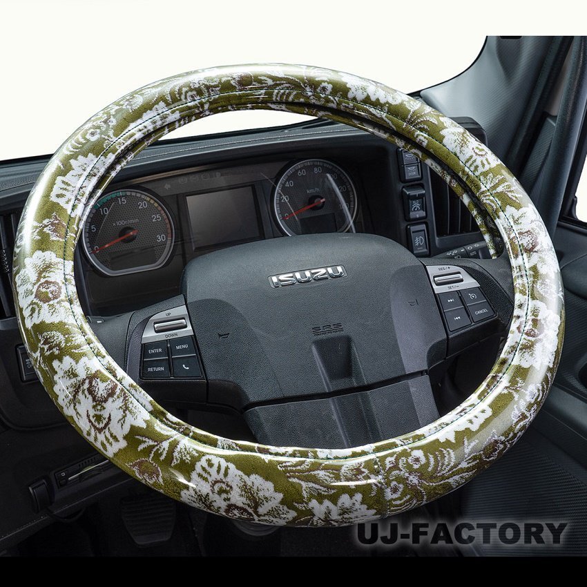 > ★MIYABI/新格子/金華山・極太ハンドルカバー(ビニール付)グリーン/Sサイズ(36cm~37cm)★車内をドレスアップ!