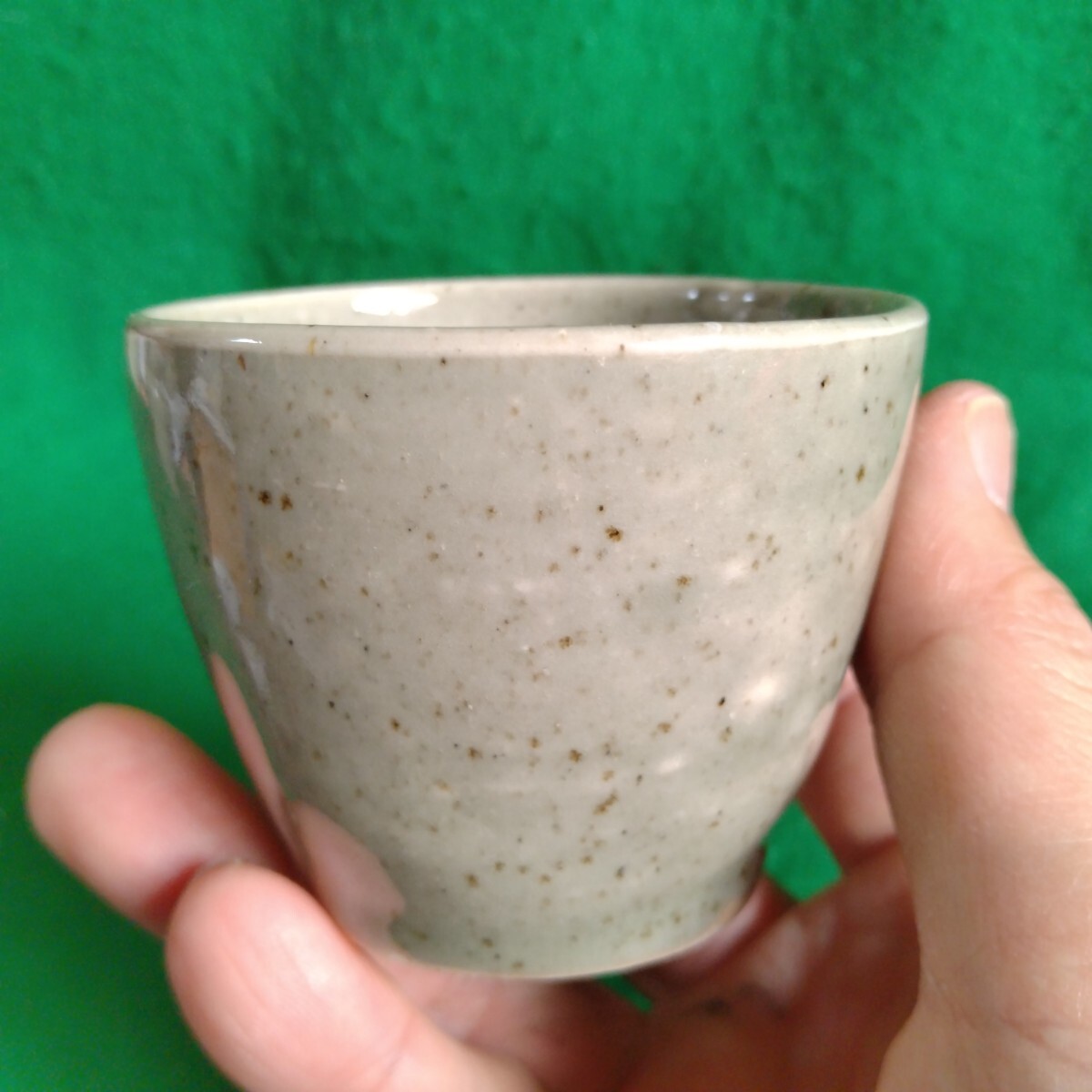 > ⑥発掘品?窯傷多い・参考品●北大路魯山人?星岡窯印?青磁猪口★底にザラツキ・火膨れ・特大ひっつきでガタツキ★実物はもっと濃い色