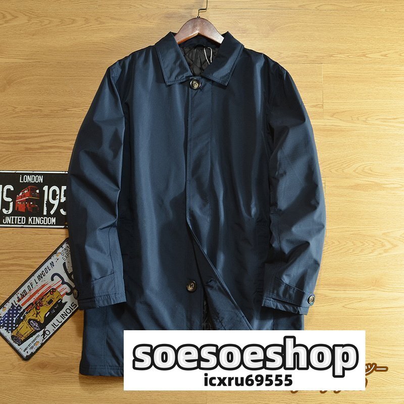 - 在庫処理◆新品 メンズコート チェスターコート スプリングコート ヨーロッパ 無地 ビジネス 春秋冬 中綿 紳士スーツ 防水 ネイビー L