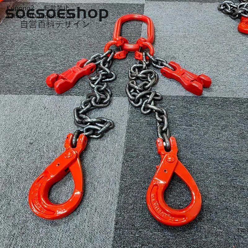 - 実用品 運搬作業用に チェーンスリング スリングフックタイプ G80マンガン鋼製 使用荷重2t 2本吊り ェーン径6mm 長さ2m 調節器
