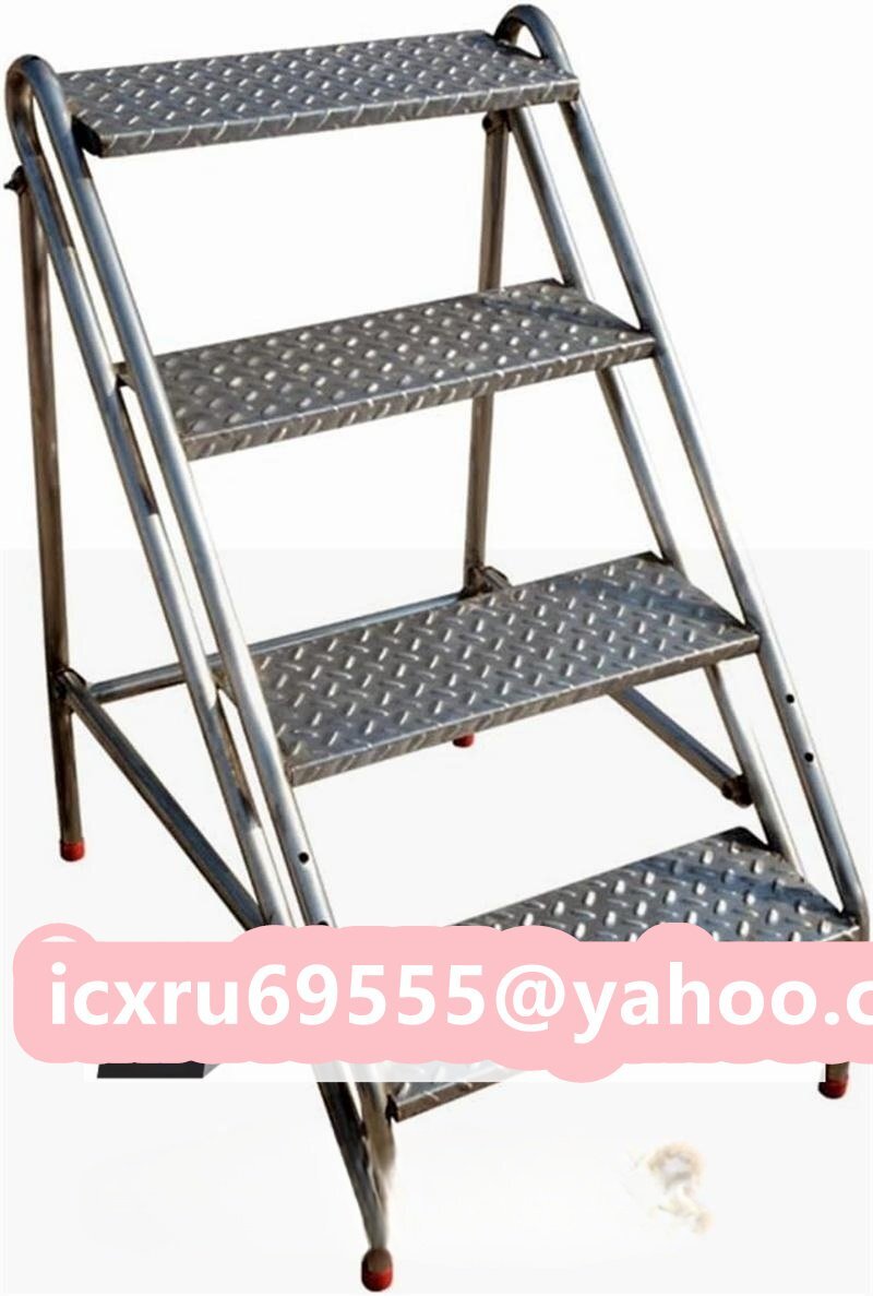 - 高品質★産業用折りたたみ式ステンレス鋼踏み台 家庭用階段 耐荷重150kg ステンレス踏台4段はしご 滑り止め ポータブル 大人/子供兼用
