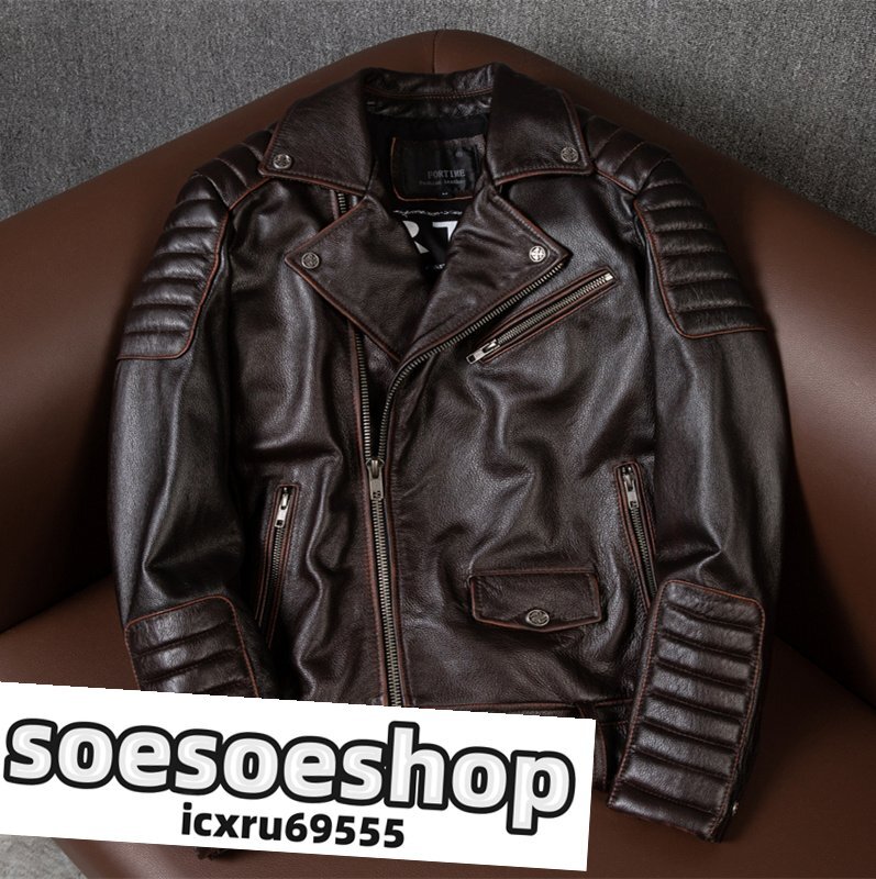 - 特価★極美品 牛革100% ライダースジャケット 防寒 メンズ 革ジャン上着 カジュアル レザージャケット★サイズ選択可能