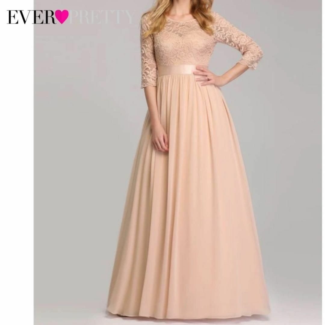 > everpretty お呼ばれドレス ロングドレス プリンセスドレス ピンク・ピンクベージュ 七分袖 カラードレス パーティドレス