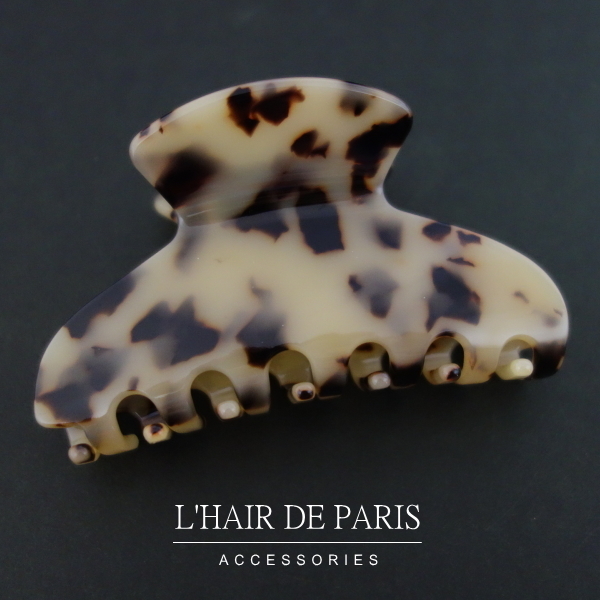 - ■L'HAIR DE PARIS■シェル模様ヘアクリップ■ベージュ■フランス製セルロースべっ甲■ヘアアクセサリー■シンプル/オフィス/髪留め髪飾り