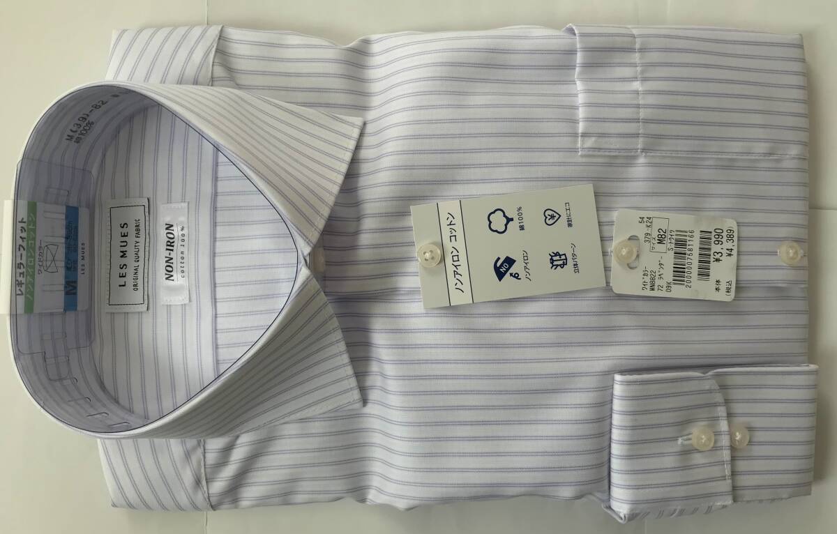 - 新品 4,389円★ビジネス 長袖ドレスシャツ★Les Mues★携帯安定ノンアイロン★ワイドカラー★M 39-82★ストライプ★ラベンダー★クールビズ