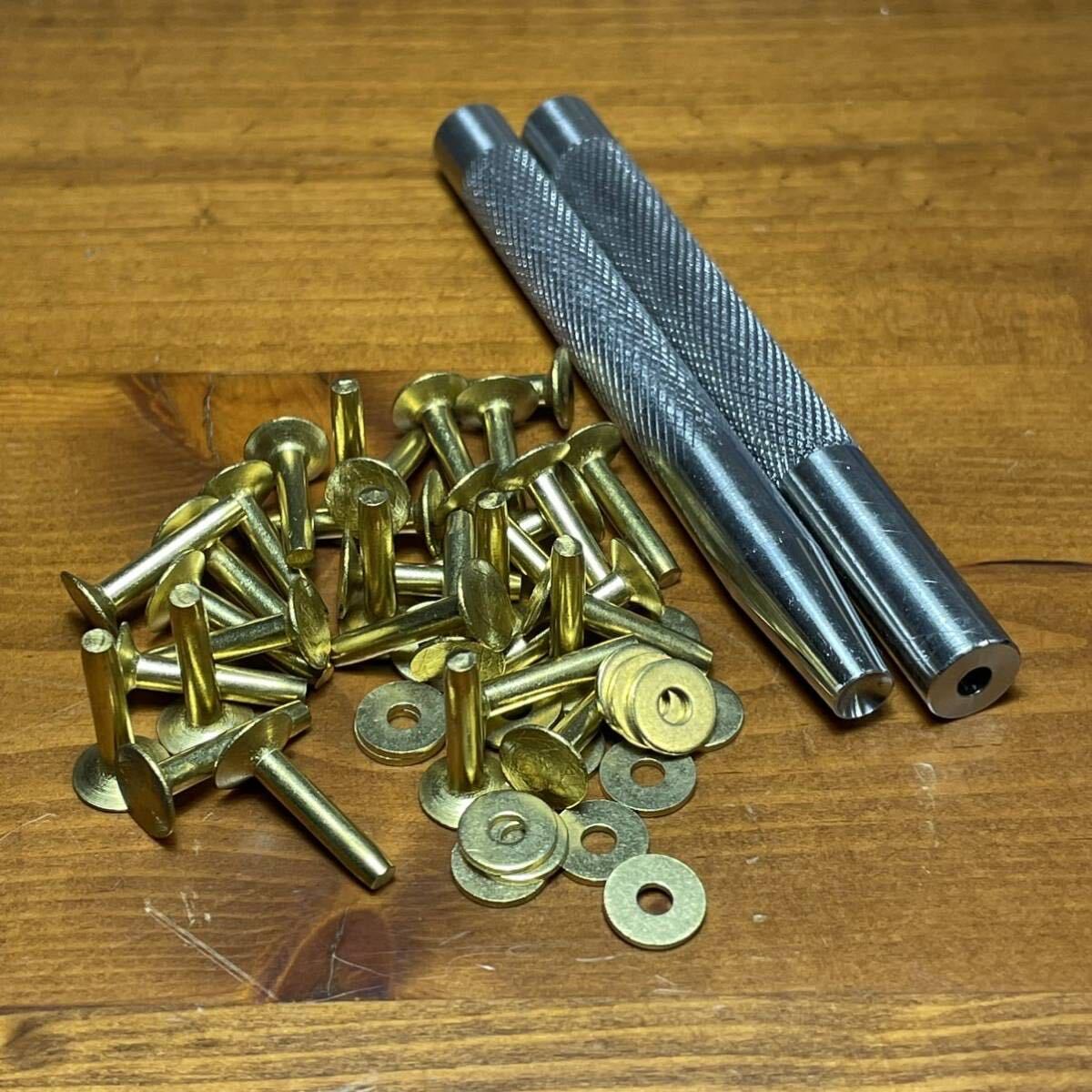 - リベット 100個 打ち具セット ブラス レザークラフト デニム