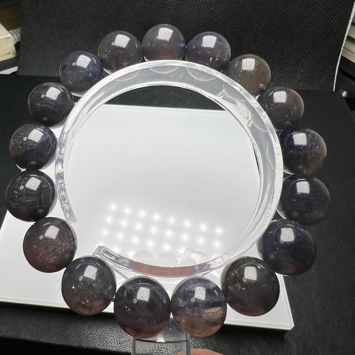 - 【73015】高品質 アイオライト 12.4mm ブレスレット サンストーン入り 天然石