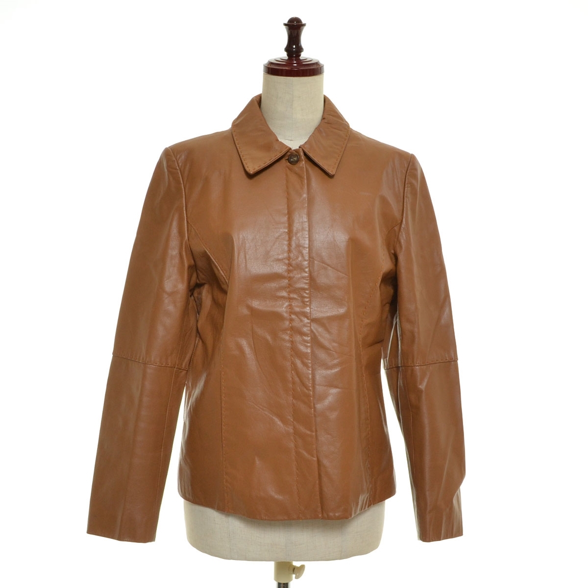 - □532012 自由区 オンワード樫山 ○レザージャケット サイズ40 レディース キャメルブラウン