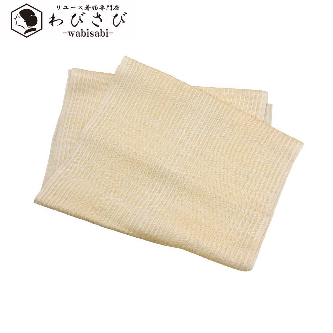 - 和装小物 帯揚げ 正絹 綸子 縦縞模様 乳白色 金糸 礼装 C-5583 着物 きもの kimono 和服 和装 中古 リサイクル着物 【送料無料】