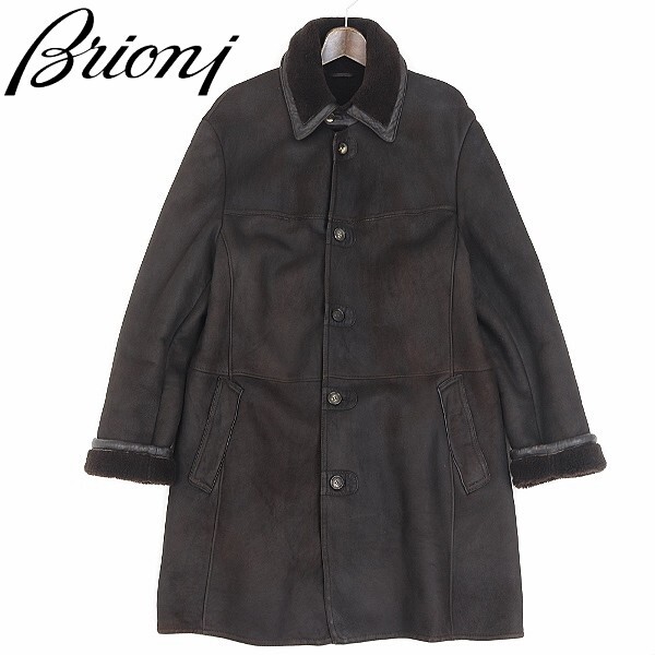 > 最高峰◆Brioni ブリオーニ × ハロッズ ムートン コート ダークブラウン 52