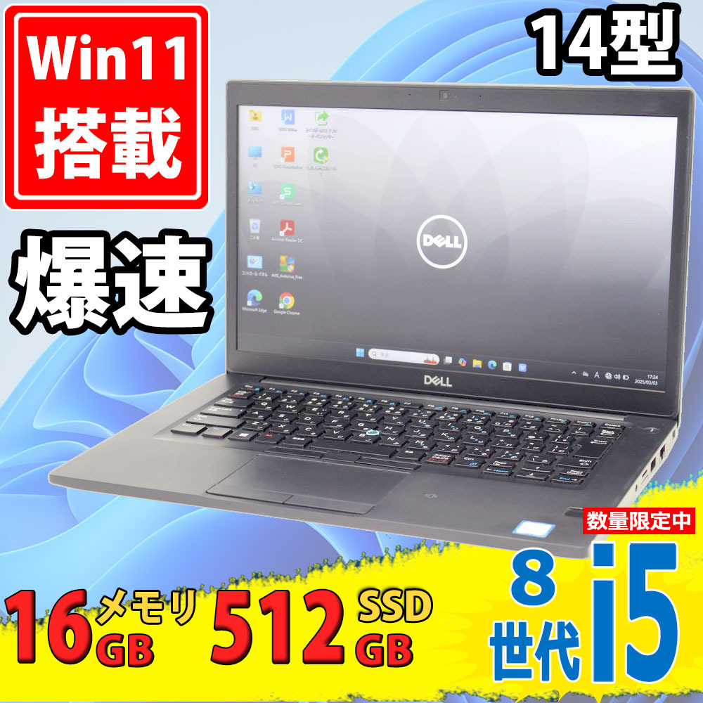 > 中古美品 フルHD 14インチ DELL Latitude 7490 Windows11 八世代 i5-8250u 16GB 512GB-SSD カメラ 無線 Office付 中古パソコンWin11 税無