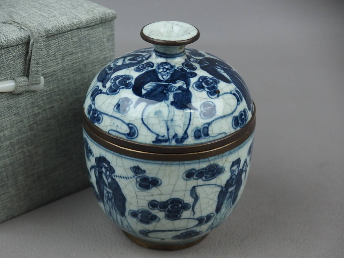 - 【骨董・茶道具】★中国古玩 洪武年製銘★★染付人物文蓋物 fs091ub.7