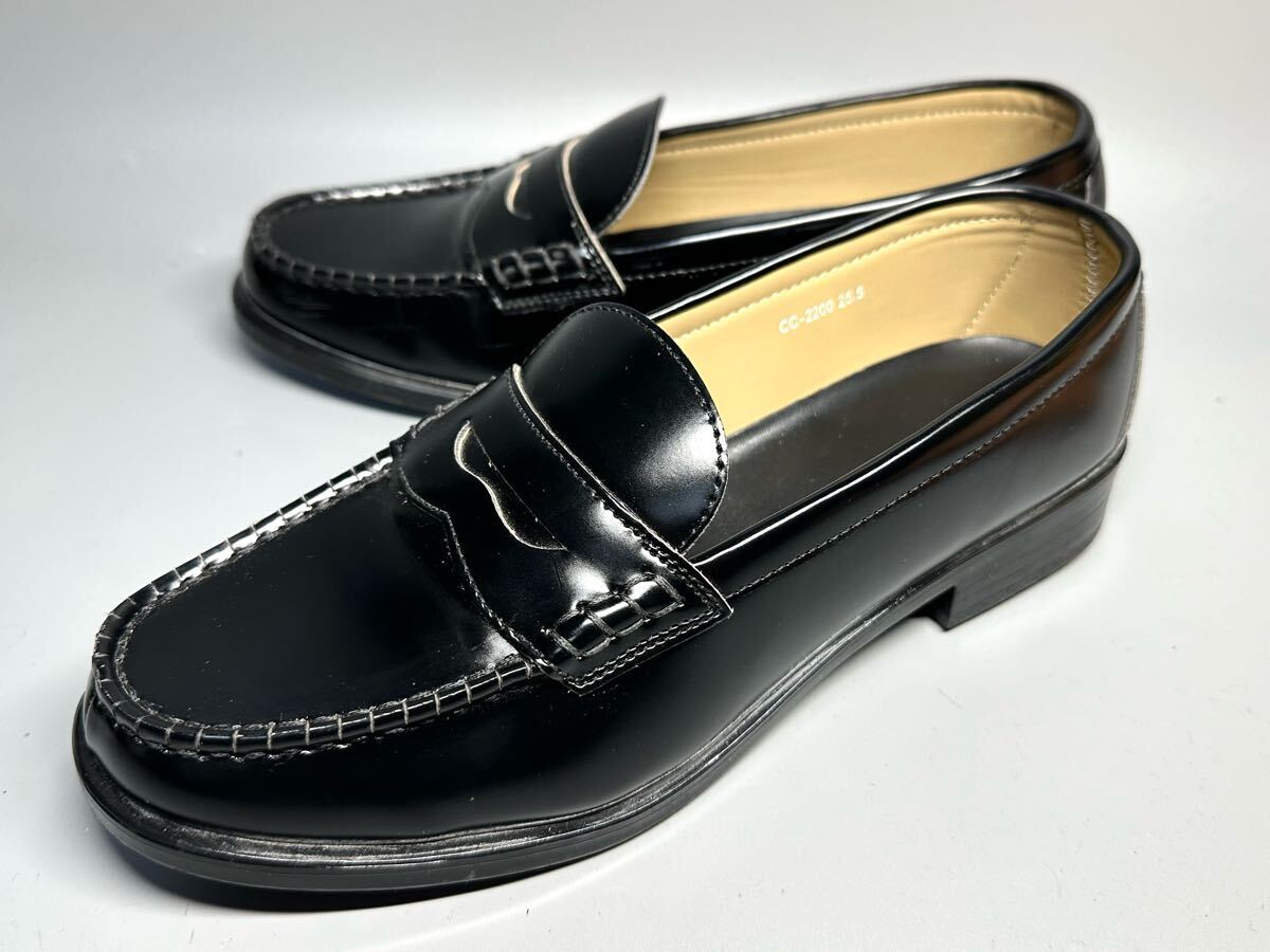 - 【即決】★美品★ CEDAR CREST セダークレスト レディース 25.5cm スリッポン コインローファー 黒 ブラック 通勤 通学 学生 レザー 2200