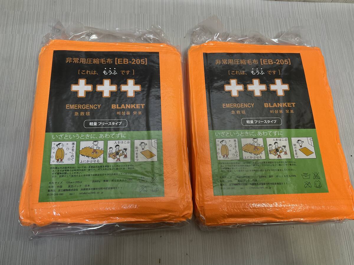 - ②【未開封品/2点セット】足立織物株式会社 非常用圧縮毛布 オレンジ 毛布サイズ:120cm×200cm