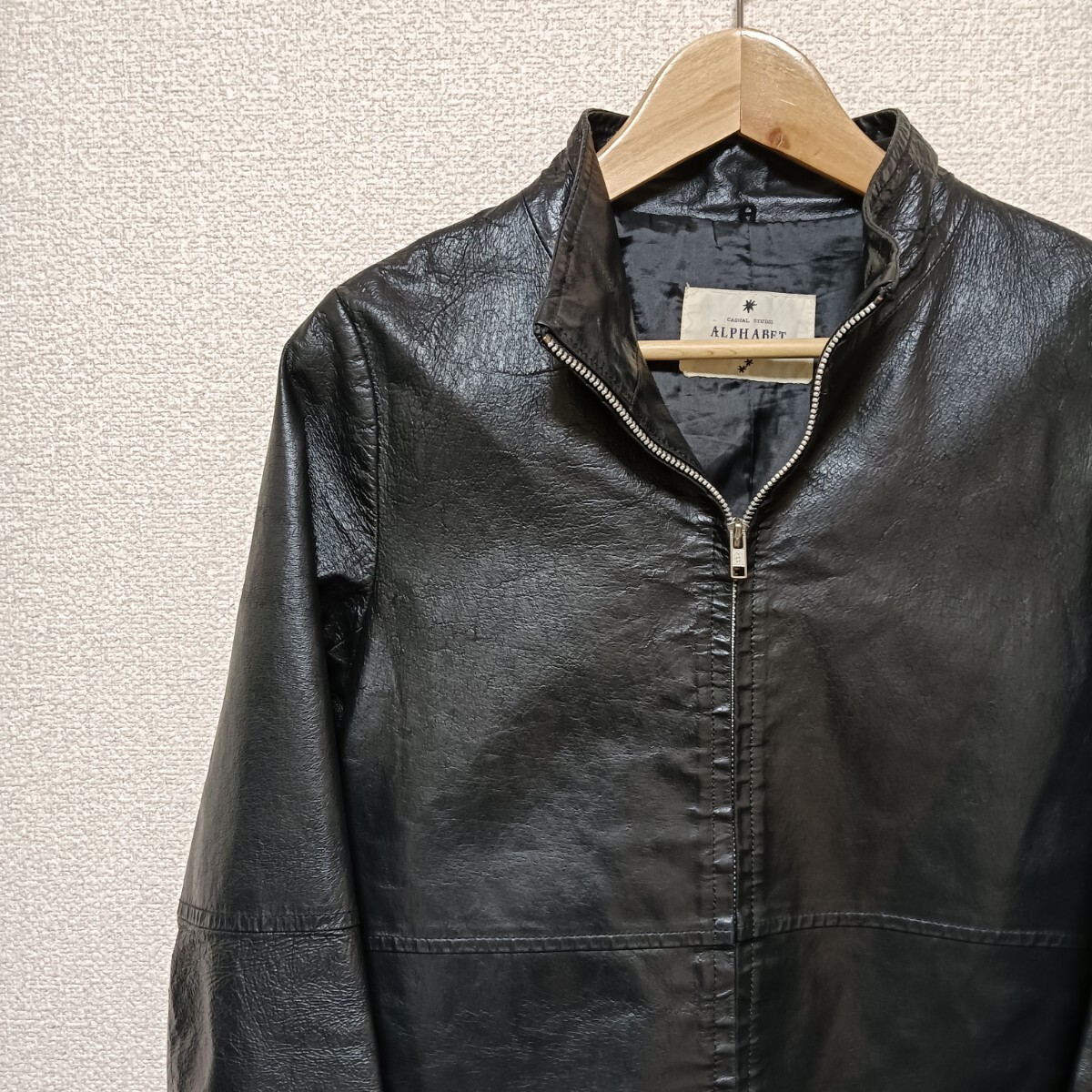 - ★ALPHABET CLUB レザージャケット カーコート アウター フリーサイズ 豚革 本革 アルファベットクラブ アルファベッツ 韓国製 古着 USED