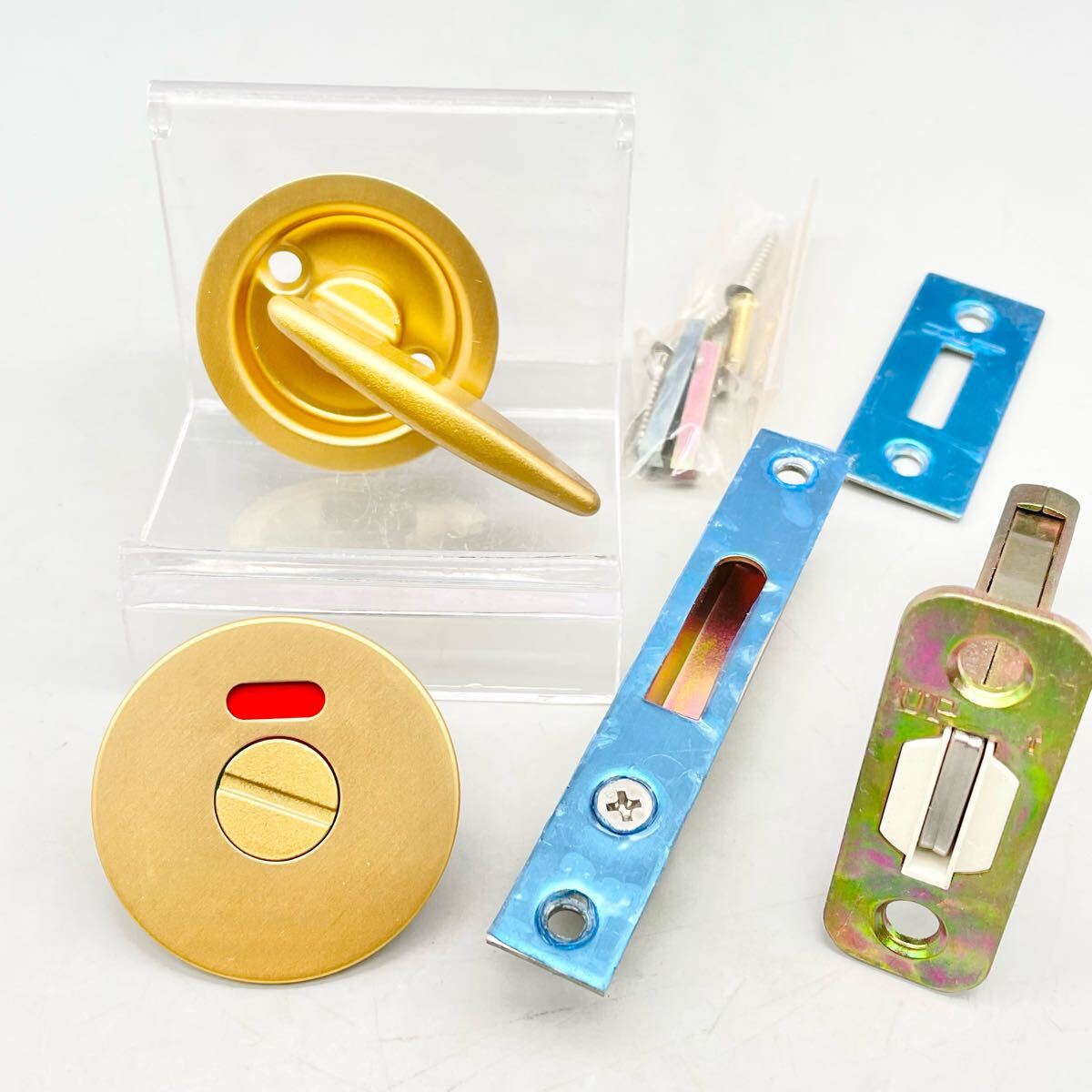 > [新品 未使用品] フロンテア レバー鎌錠 チューブラタイプ 表示錠 建具 トイレ ドア 扉 BS 51mm 扉厚 28~36mm ゴールド 金物屋 在庫品