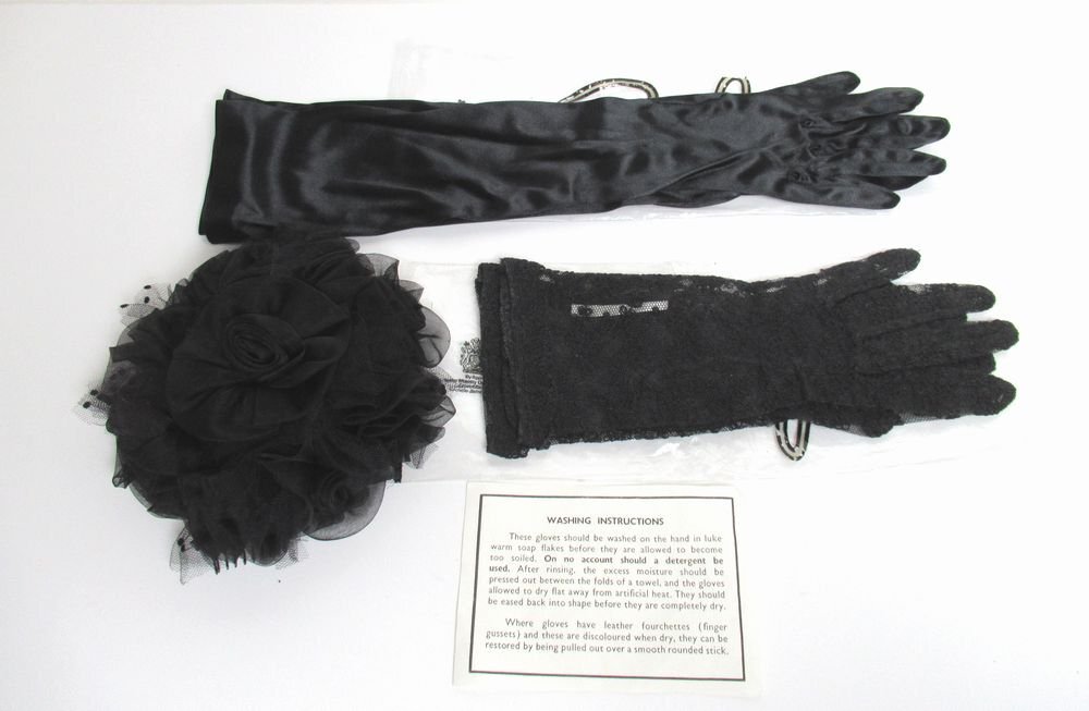 - ●美品!ヘッドドレス(髪飾り)&英国王室御用達のグローブメーカー/コーネリア・ジェームスのグローブ2点/ブラック/冠婚葬祭/フォーマル