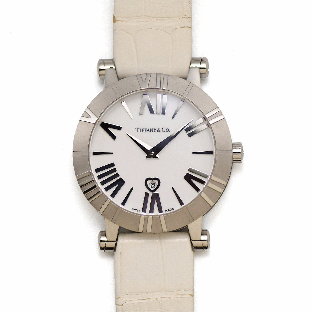 - ティファニー TIFFANY&Co. アトラス 36MM Z1301.11.11A20A71A クォーツ SS/CE/レザー レディース 女性用 腕時計 研磨仕上げ済み 中古