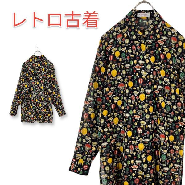 > 【レア】90s 80s レディース 総柄シャツ アート柄 バルーン 気球 長袖シャツ チュニック ブラウス 古着 昭和レトロ 透け感 匿名配送