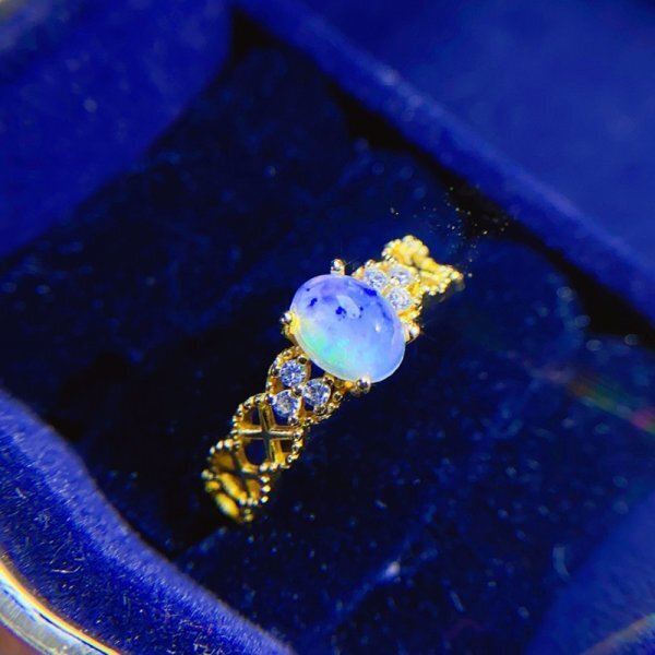 女性用天然オパールリング、5*7mm、925シルバー、デラックスストーン、18k金メッキ、パーティーギフト