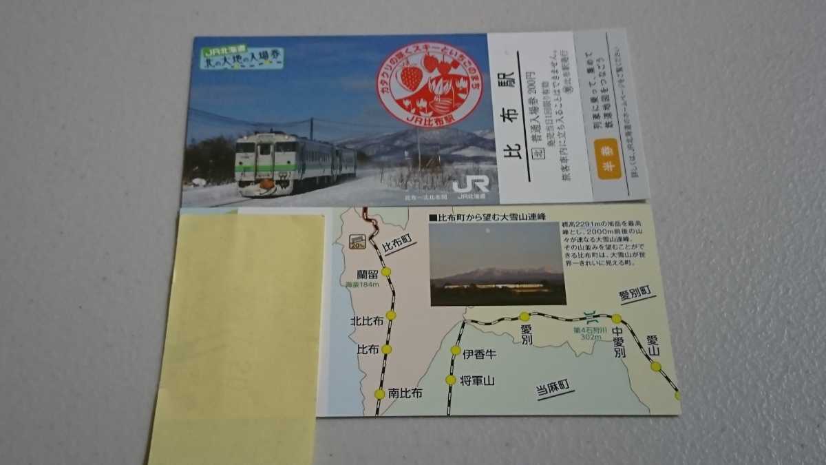 - JR北海道 北の大地の入場券 宗谷本線 比布駅1枚応募券付。