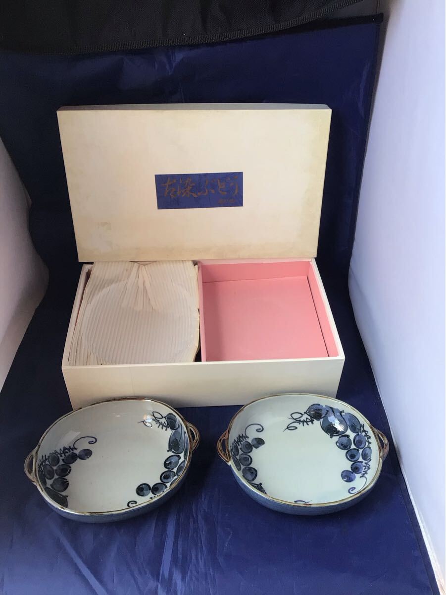 - 土160、瀬戸焼 古染めブドウ グラタン皿5枚