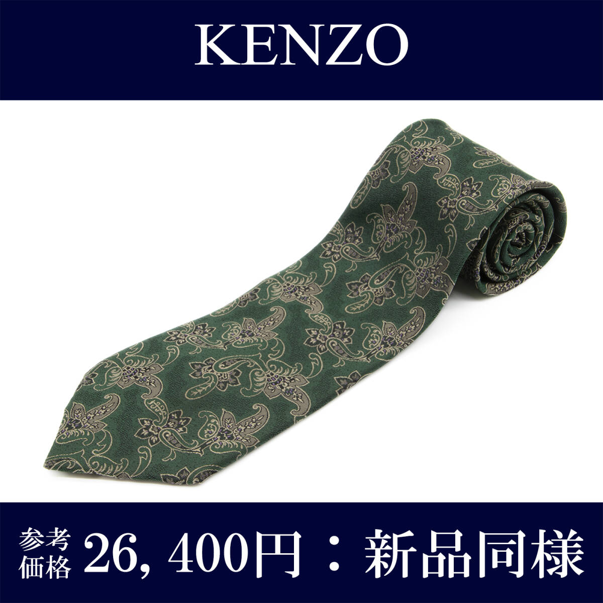 - 送料無料 ケンゾー ネクタイ ジャガードタイ 新品同様 シルク 緑 ベージュ 紫 ビジネス ブランド 花 フラワー 珍しい おしゃれ 綺麗 N018