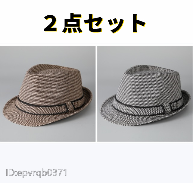 > 2点セット◇ソフト帽子 新入荷 メンズキャップ ジャズハット 紳士 中折れハット フリーサイズ 56-58センチ グレー/カーキ