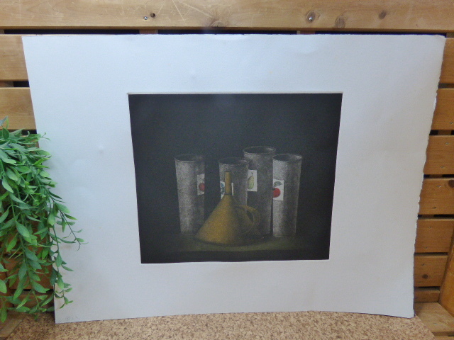 - ま40.横井巴 『漏斗と果物』銅版画 【真作】