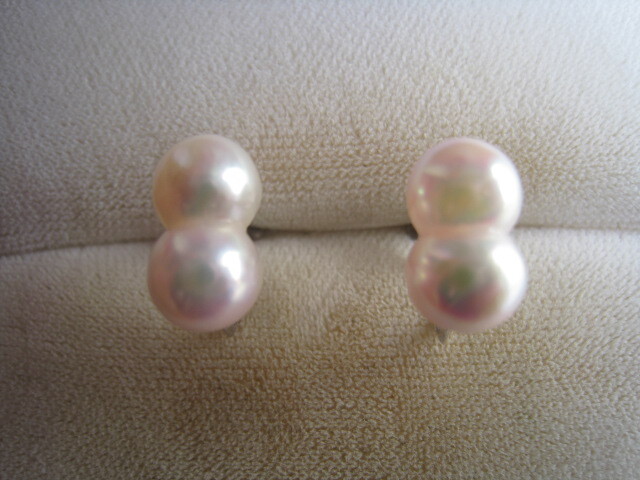- [SAMU]極美品!!照り抜群あこや真珠7.2mmx12mmX2粒 k14WGイヤリング 新品同様!